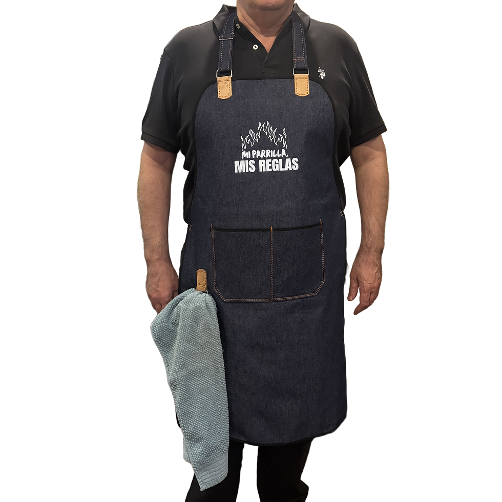 👨🍳Delantal de Jean con Estampa y Detalles en Cuero